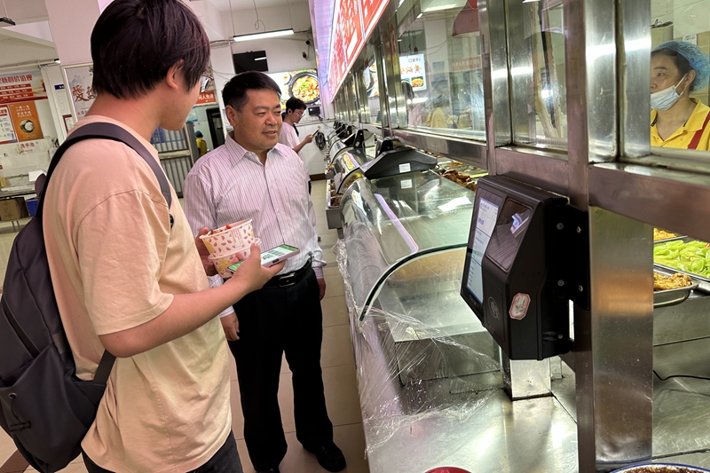 在后勤处,陆林在座谈交流中,听取了后勤处关于近年来后勤工作取得的经验成效和存在的困难问题的汇报,随后走访了商超、邮政快递点、学生宿舍、食堂,与各场所工作人员、宿舍管理员亲切交谈,和学生共进午餐,了解了超市经营、快递消杀、宿舍通风消毒、文明养成与安全用电、食堂卫生等情况,倾听了职工和学生对学校建设发展的意见建议,充分肯定了后勤工作为学校发展所作的贡献,表示后勤人吃苦耐劳、敬业奉献,在校园的每一个角落辛勤付出,为校园环境绿化美化写下了生动的注脚。陆林要求,新时代新征程上,后勤工作要紧紧围绕“质量后勤、平安后勤、绿色后勤、智慧后勤、文化后勤”建设目标,突出党建引领,体现育人为本,为广大师生员工提供更贴心更及时的优质服务与保障,在党建“双创”与星级党支部创建联创联建联动过程中积极发挥优势、凸显特色、讲好故事、树立品牌,抓实抓好校园绿化、物业管理、食品健康、能源资源节约、巩固提升文明安全宿舍创建成果、专业队伍建设等一系列重点工作,奋力开创服务意识更强、服务态度更优、服务质量更高、服务成色更足、服务品牌更亮的后勤工作新格局。