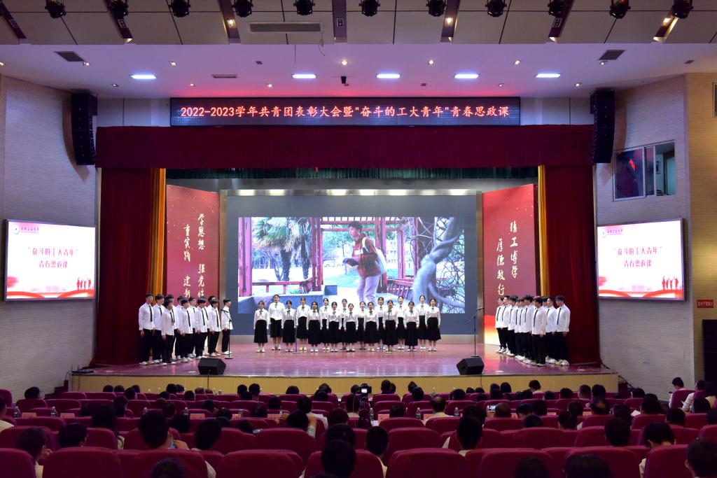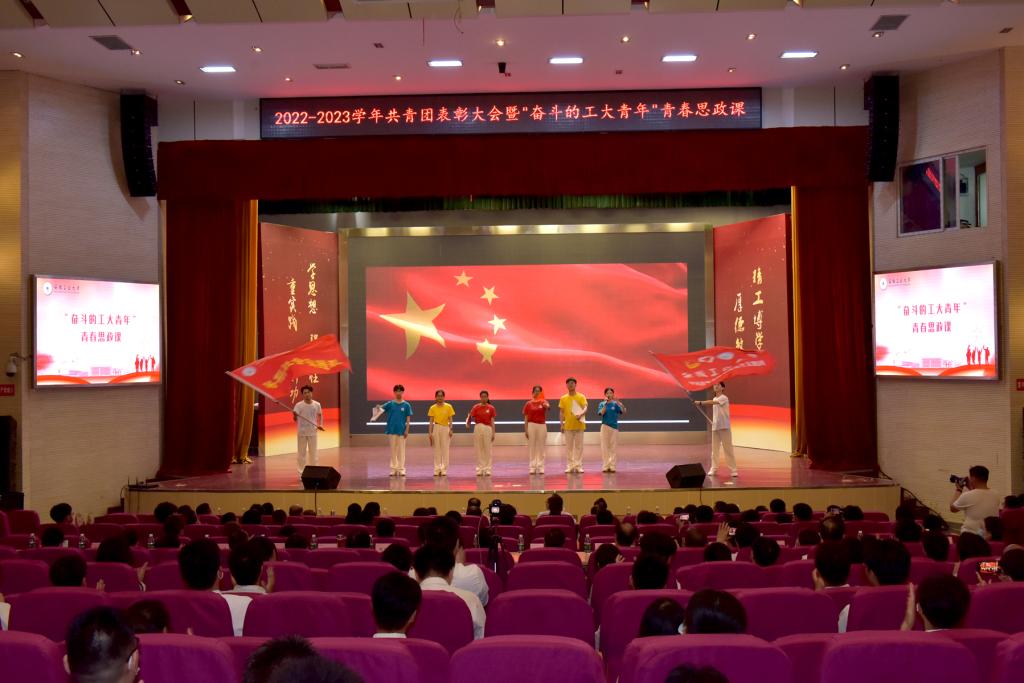 “奋斗的工大青年”青春思政课上,校“梦之韵”合唱团的合唱《如愿》展现了我校青年的蓬勃朝气,校五四红旗团支部代表、校优秀青年代表、校大学生宣讲团成员代表和校研究生支教团成员代表分别以“共筑活力团支部”“争做坚定信仰者”“勇当模范践行者”“甘做无私奉献者”为主题作了精彩分享,他们用亲身的经历和感受给同学们讲述了一堂生动的思政课。