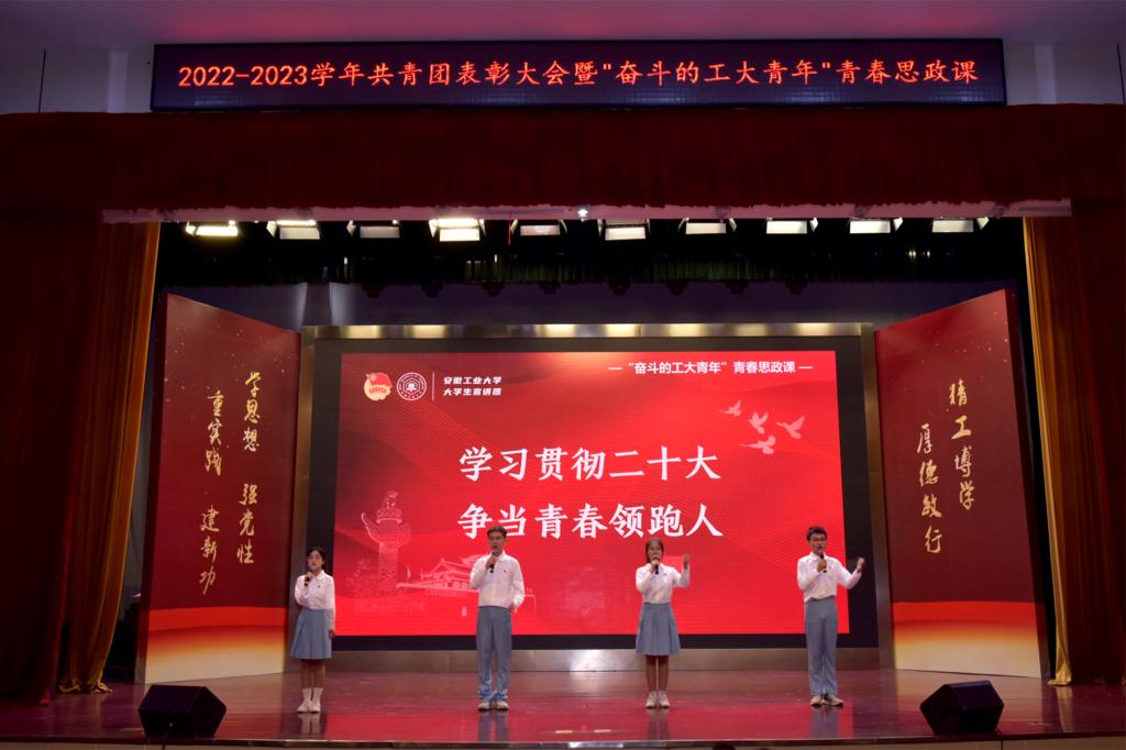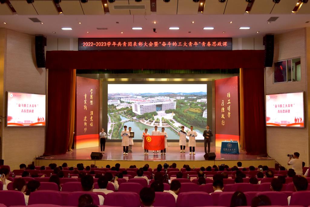 5月4日下午,我校在秀山校区举行“青春向党、奋斗强国”2022-2023学年共青团表彰大会暨“奋斗的工大青年”青春思政课。校领导陆林、魏先文、祖明、顾明言、刘明、潘淑琴、水恒福、曾杰、罗坤出席。党办校办、组织部、宣传部、学生工作部、研究生工作部、教务处等部门负责人,各学院党委书记、分管学生工作副书记、分团委书记以及共青团先进集体、先进个人代表和团员青年代表500余人参加。
