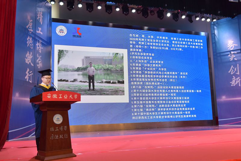 毕业典礼在庄严的国歌声中拉开帷幕。机械工程学院党委书记徐柳根宣读了2023年安徽省普通高等学校优秀毕业生、校优秀毕业生、校友联络员名单。