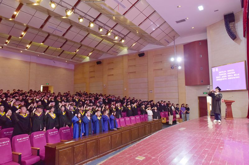 毕业生代表张涵、在校生代表张晨表达了对母校、师长的感恩,对未来的美好畅想。导师代表朱旺向毕业生表达了殷切的期望,祝愿每一位毕业生前程似锦。全体毕业生集体宣誓“铭记师长教诲,肩负时代使命;崇尚科学,追求真理;奉献社会,服务人民;为祖国富强不辞辛劳,为民族复兴奋斗终生。”