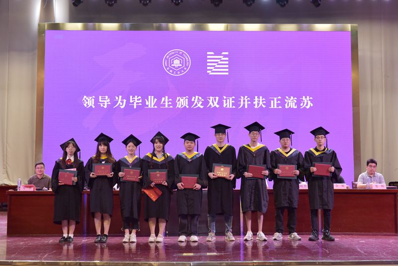 学位授予环节,领导嘉宾为2023届毕业生拨穗正冠,颁发毕业证书、学位证书,并合影留念。