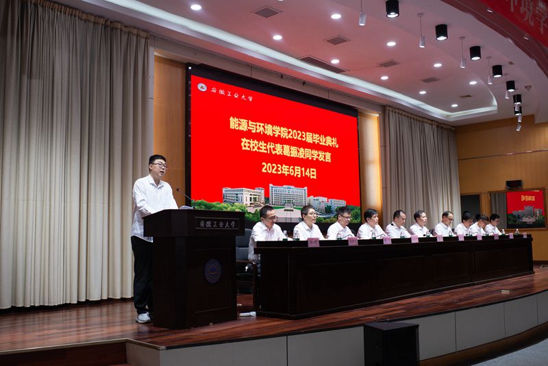 曾杰代表学校向即将踏上新的人生旅途的同学们表示热烈祝贺,并指出能源与环境学院今年279名本科毕业生中,有93人将进入国内“双一流”高校攻读硕士研究生,考研录取率居全校前列;涌现出校“十佳班级”能源与动力工程191班等一批先进集体和校“大学生自强之星”、校“十佳大学生”余锦仁等一批优秀学生典型个人。这些成绩展示了学院良好的育人成效和能环学子努力拼搏的精神风貌。曾杰勉励同学们坚持梦想,做敢于担当、永不言弃的人;不断学习,做追求真理、勤于实践的人;不懈奋斗,做砥砺奋进、开拓创新的人。