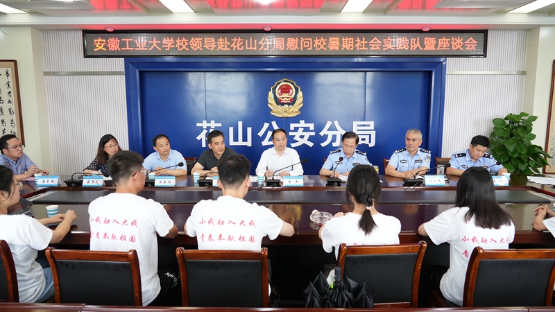 7月12日下午,校党委常委、副校长曾杰率队前往马鞍山市公安局花山分局、市科技馆,看望慰问化学与化工学院和微电子与数据科学学院暑期社会实践队员。化学与化工学院、微电子与数据科学学院负责人陪同。