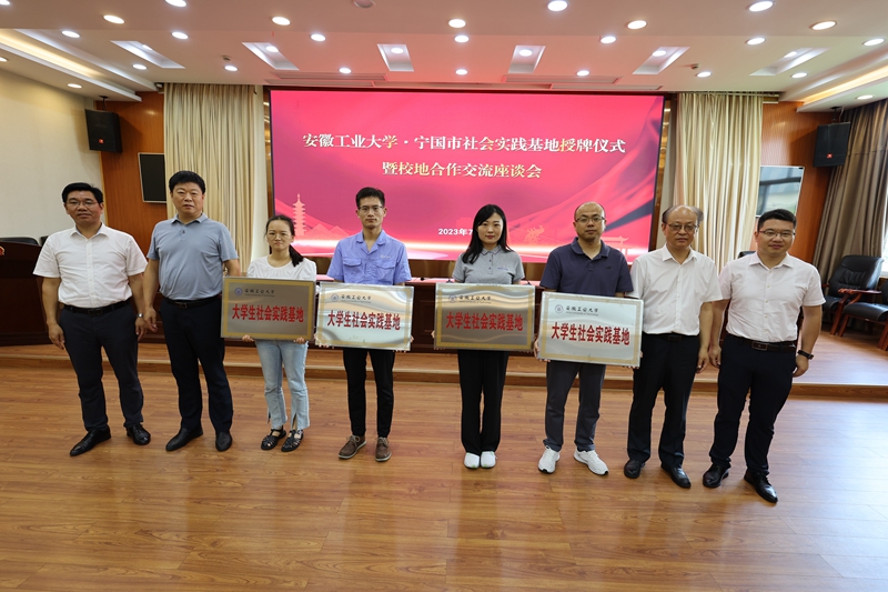 刘明为安徽中鼎减震橡胶技术有限公司、保隆(安徽)汽车配件有限公司、德特威勒密封技术(安徽)有限公司、安徽省宁国市东波紧固件有限公司进行“安徽工业大学大学生社会实践基地”授牌。