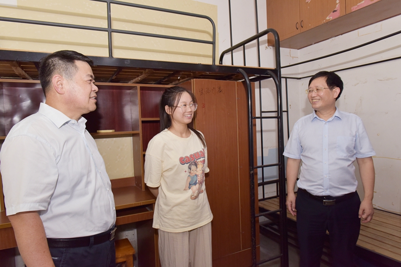 9月8日下午,校党委书记陆林、校长魏先文等校领导深入两校区迎新报到现场检查指导,看望前来报到的新生和家长,慰问迎新工作人员和学生志愿者,详细了解新生报到情况,要求各部门和学院周密部署,通力合作,为学生提供精准、安全、暖心的入学报到服务。校领导与新生和家长亲切交谈,仔细询问新生们报到情况、入学感受以及对大学生涯的规划,对迎新工作人员及学生志愿者的辛苦付出表示感谢,叮嘱他们注意防暑降温。陆林、魏先文等校领导还深入计算机科学与技术学院、公共管理与法学院、能源与环境学院等新生宿舍走访慰问,详细了解新生家庭、学习、生活等情况,为新生发放爱心棉被和慰问金,勉励他们珍惜大学时光,不负青春年华、刻苦拼搏学习,争做有理想、敢担当、能吃苦、肯奋斗的新时代好青年,努力成长为堪当民族复兴重任的时代新人。