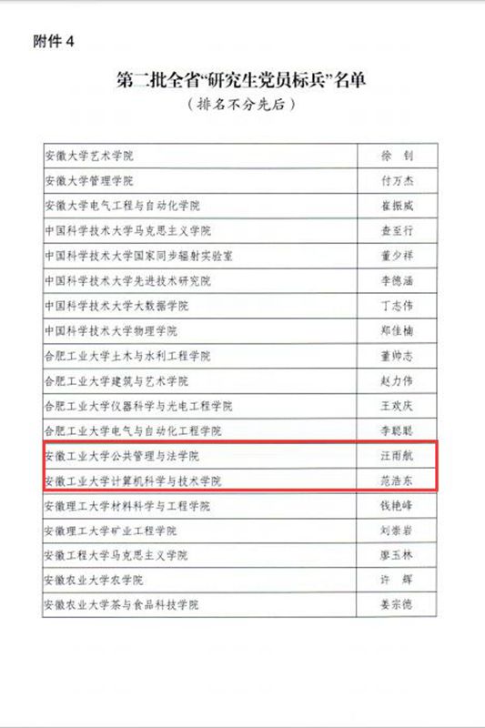 建筑工程学院党委入选全省“标杆院系”培育创建单位;冶金工程学院冶金工程党支部等8个党支部入选全省“样板支部”培育创建单位;冶金工程学院冶金工程博士研究生党支部、2名研究生党员分别入选全省“研究生样板党支部”和“研究生党员标兵”创建名单。
