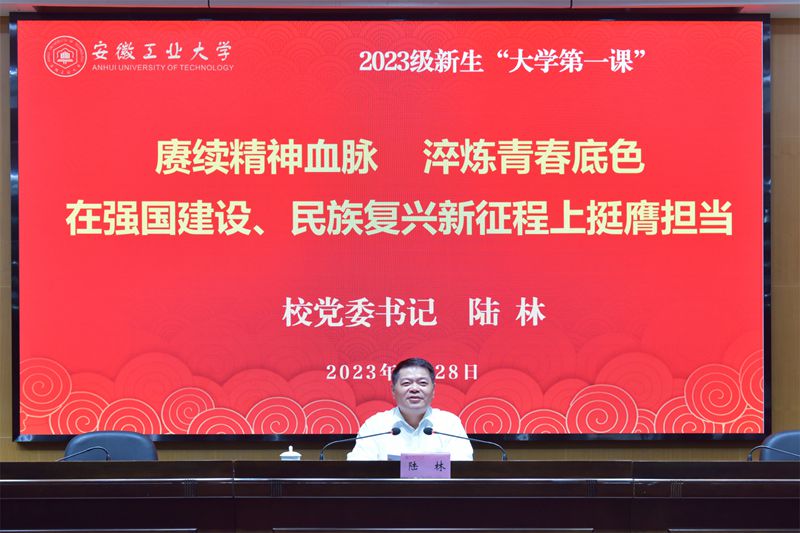 陆林指出,要读懂大学,从65年办学治校的优良传统和深厚底蕴中汲取前行力量。65年的办学历史凝结着爱党报国的价值追求,65年的文化积淀蕴含着拼搏奉献的精神内涵,65年的春风化雨映照着育人育才的初心使命。学校自诞生以来始终听从党的召唤,坚定以工业强国、振兴中华为己任,与党和国家、民族命运紧密相连,始终在探索中成长、在改革中崛起、在发展中跨越、在创新中前行,深深烙上了“钢铁报国”“投身改革”“强国建设”的时代印记,一代代安工大人也在爱党报国的生动实践中,书写了一部自强不息、埋头苦干、勇于创新的奋斗史。希望同学们在学校奔腾不息的历程中深刻领悟爱党爱国、强党强国的办学追求,在前辈先贤不懈奋斗的故事中汲取奋勇前行的智慧;从校训精神与大学文化中汲取源源不断的精神动力,以奋斗者的姿态在学校发展的时光轴中镌刻出鲜活的青春印记;从躬耕教坛的“大先生”身上体悟教育家精神,读懂教育初衷,传承师者风范,以赤诚之心、奉献之心、仁爱之心投身各行业各领域,在强国建设、民族复兴新征程上为学校创造新的历史荣光。