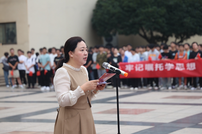 9月28日,我校在秀山校区教学楼广场举行“牢记嘱托学思想、挺膺担当建新功——国旗下的微团课”迎国庆主题升旗仪式。安全保卫部、团委、马克思主义学院、机械工程学院相关人员以及2023年新入团学生共400余人参加活动。