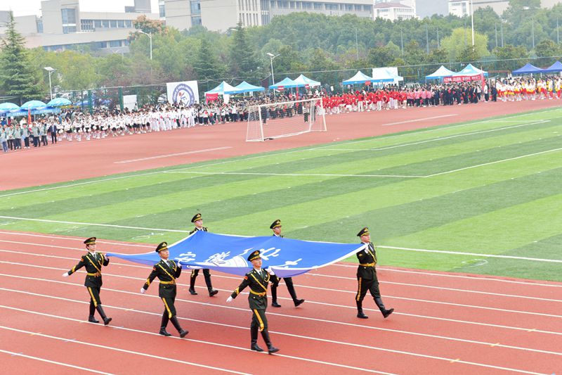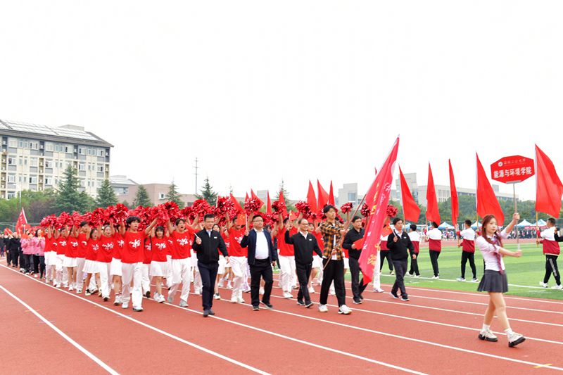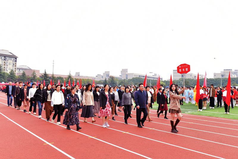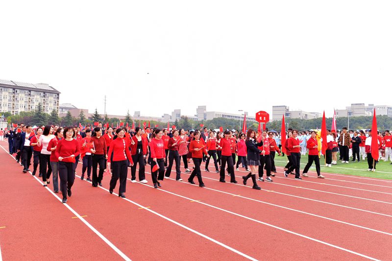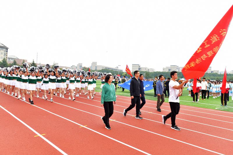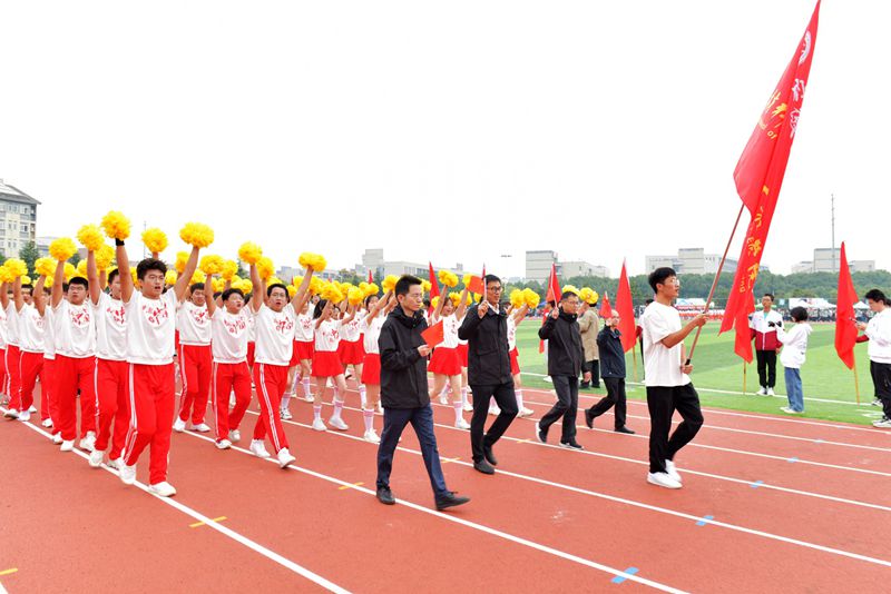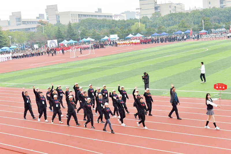上午八点整,伴随着雄壮激昂的《运动员进行曲》,校旗护旗手拥着鲜艳的校旗健步走向主席台,紧随其后的是由管理科学与工程学院48名同学组成的红旗方阵和裁判员方阵。教职工运动员和学生代表队按照既定的顺序依次入场。
