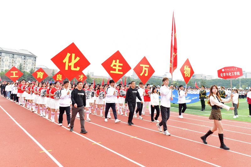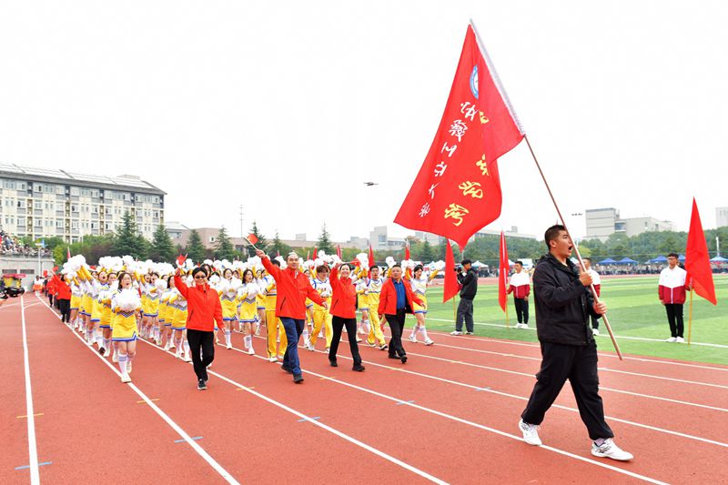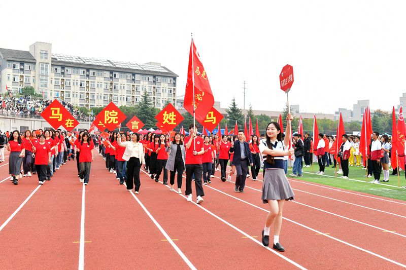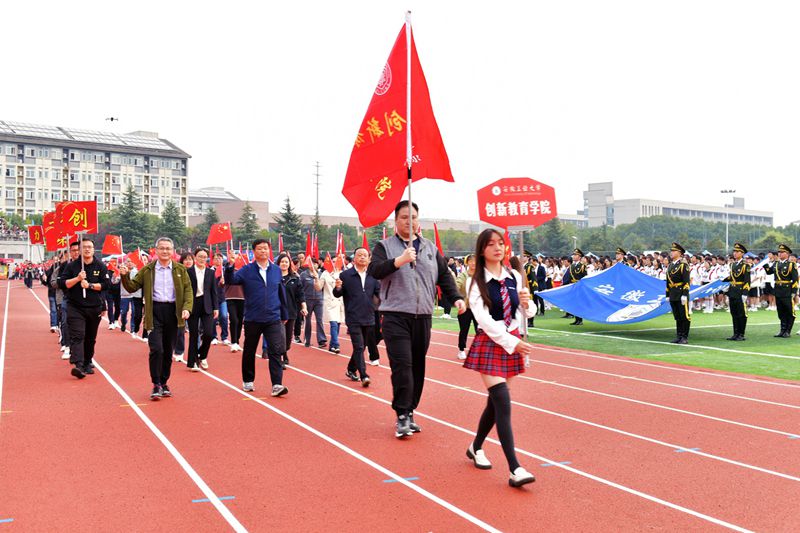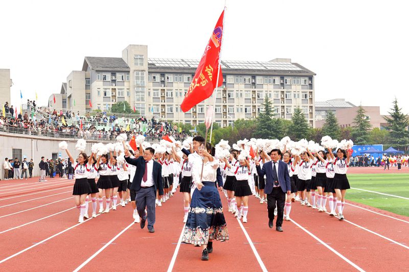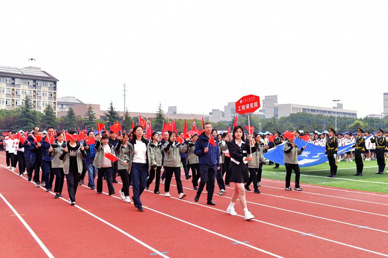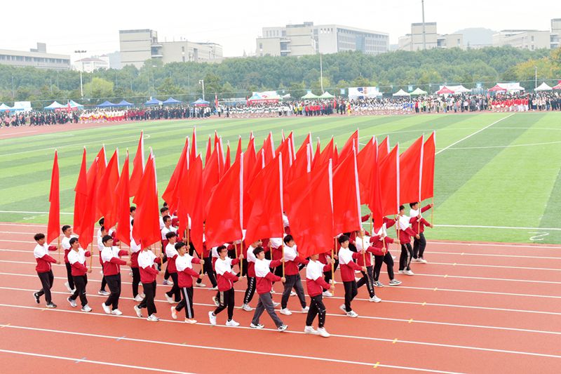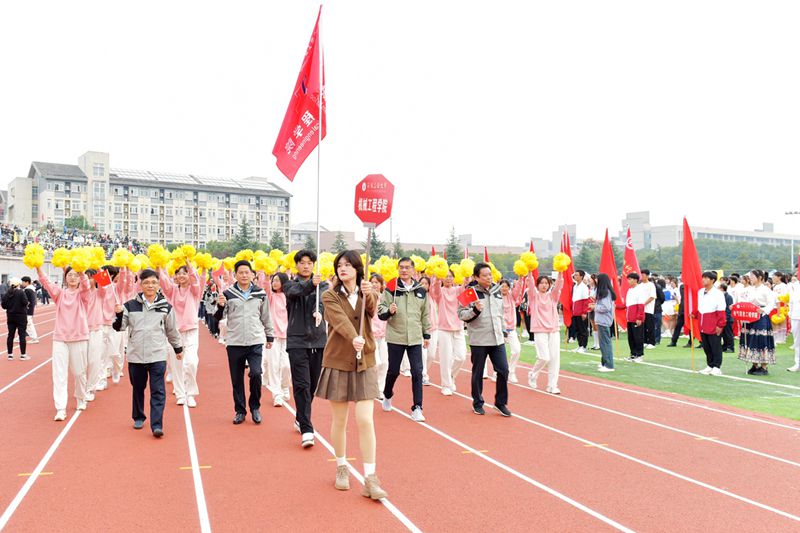 上午八点整,伴随着雄壮激昂的《运动员进行曲》,校旗护旗手拥着鲜艳的校旗健步走向主席台,紧随其后的是由管理科学与工程学院48名同学组成的红旗方阵和裁判员方阵。教职工运动员和学生代表队按照既定的顺序依次入场。