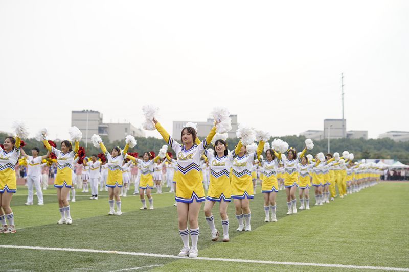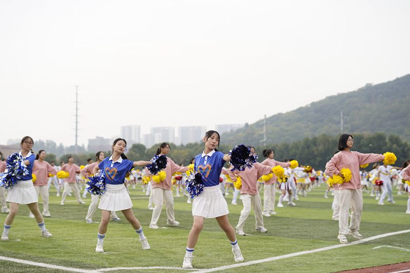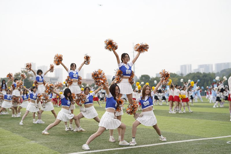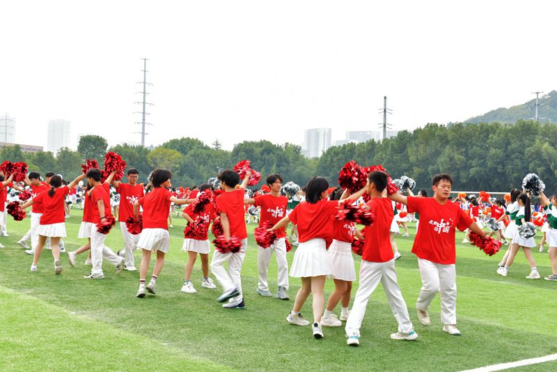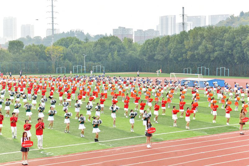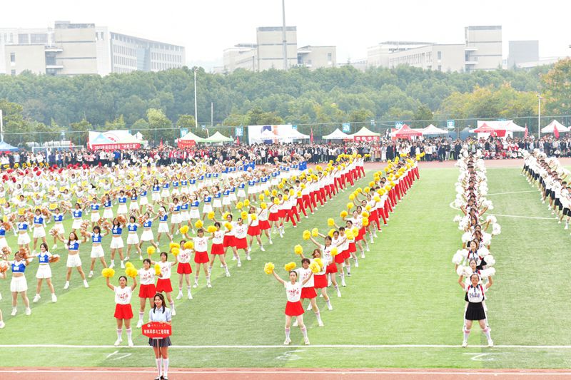 开幕式后,全校14个学院840余名同学参加大型团体花球啦啦操《加油amigo+美丽中国》表演。