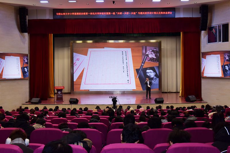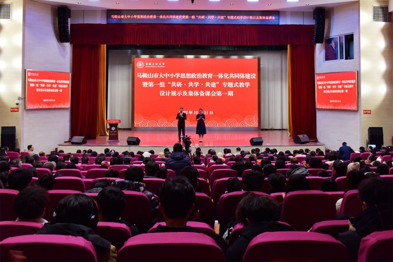 12月11日下午,马鞍山市大中小学思想政治教育一体化共同体建设暨第一组“共研·共学·共建”专题式教学设计展示及集体备课会第一期活动在秀山校区大学生活动中心举办。