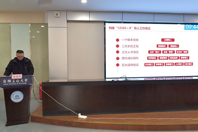 1月5日,学校在会议中心三楼第五会议室举办第一批“三全育人”综合改革试点学院中期评估汇报答辩和第二批“三全育人”综合改革试点学院申报评审会。中共马鞍山市委宣传部副部长、市文明办主任、市思想政治工作研究会会长陈学明,南京工业大学党委宣传部副部长朱忠祥,《中国教育报》安徽记者站记者方梦宇,校党委常委赵保平,校党委常委黄勇受邀担任评审专家。16个教学单位党组织书记、分管学生工作副书记参加会议。