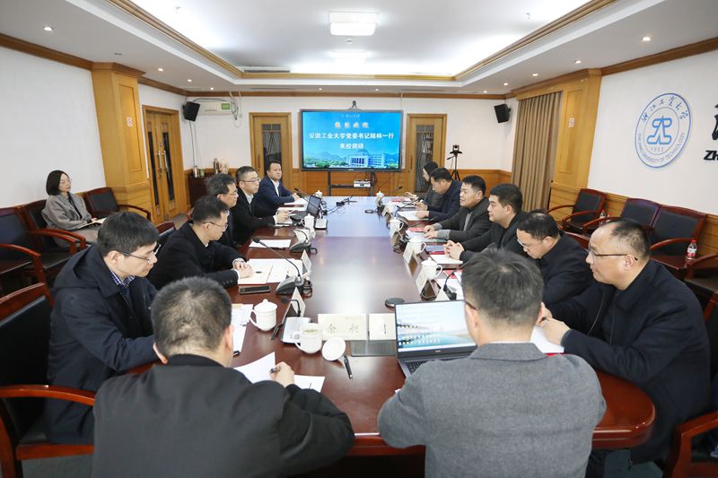 为深化落实中央长三角一体化发展战略决策部署,深度融入长三角高等教育一体化高质量发展格局,1月15日,校党委书记陆林率队赴浙江工业大学调研,充分借鉴学习浙江工业大学党建与事业发展的先进经验、全面从严治党的创新机制举措以及党代会筹备工作经验。党办校办、纪委办、组织部、宣传(统战)部、发展规划处负责人陪同调研。