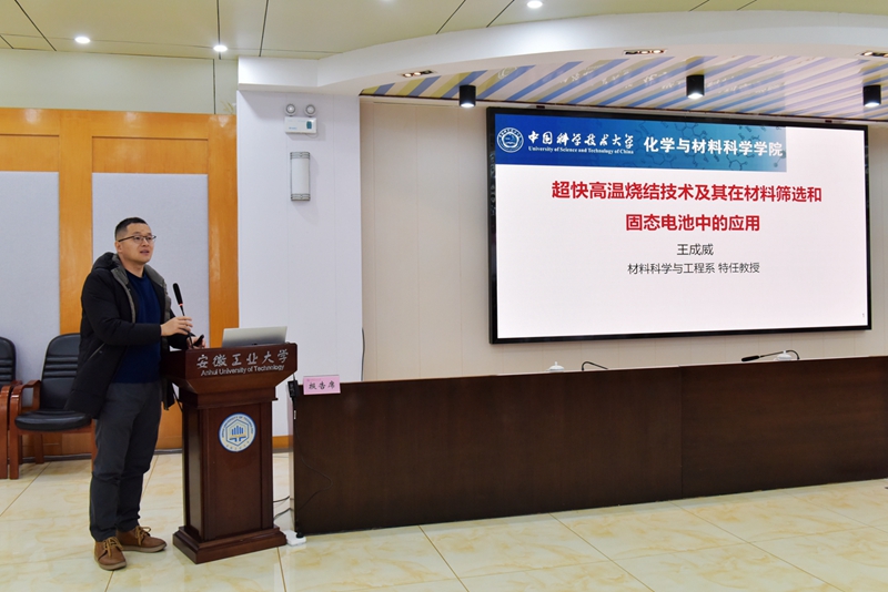 中国科学技术大学陈春华教授、杜平武教授、王成威教授、张树辰教授围绕材料学科领域的前沿研究,分别作了题为“Ti/Ni基快充锂电负极材料的储锂性能研究”“弯曲分子碳材料”“超快高温烧结技术及其在材料筛选和固态电池制备的应用”“碳氢分子活化的金属催化剂可控设计—碳材料制备与产氢的共赢”的学术报告。