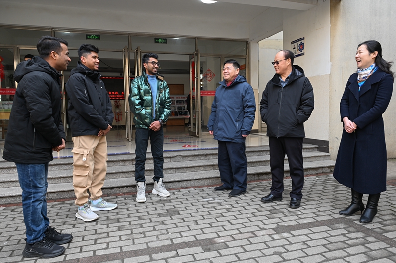 “大家辛苦了!给你们拜年啦!”陆林一行先后来到西南门门岗、校园中心、水电中心、建工学院和留学生公寓,看望慰问值班值守的工作人员,详细了解假期安全保卫、后勤保障、学生管理服务等方面情况,对他们心系学校发展,始终坚守岗位,认真履职尽责的奉献精神表示敬意和感谢,给他们送上节日慰问,嘱咐大家要注意防寒保暖、保重身体,祝愿大家新的一年阖家幸福、万事胜意。陆林强调,值班人员要树牢安全意识,筑牢安全防线,做好防火防盗工作,为师生提供更加优质高效的保障服务、创造更加和谐稳定的校园环境,全力守护师生生命财产安全。