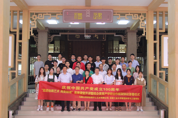 为了庆祝中国共产党成立100周年,弘扬中华优秀传统文化,以美育人、以美化人、以美培元,6月30日,数理科学与工程学院与马鞍山市洪滨丝画手工艺术有限公司签署校企美育产学研合作框架协议,聘请袁洪滨为学院美学教育特聘教授,共同打造“走进丝画艺术,尚美铸魂”美育课堂。美育课堂合作期限为3年,双方将立足各自专业优势,共同推动党建文化、管理文化相互融合,共谋高质量发展。(撰稿:陈恳 审核:黄仙山 张苒 杜飞)