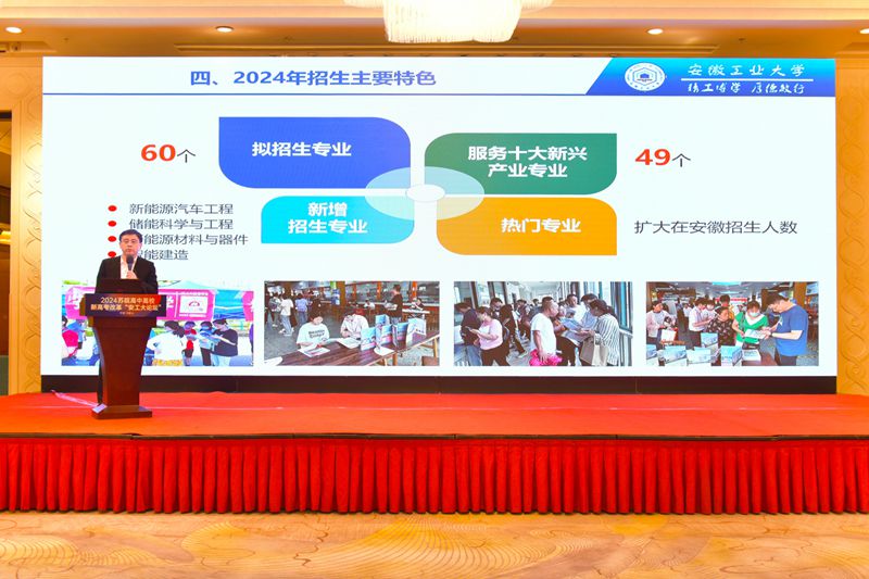 陆林代表学校向江苏、安徽两省高校高中的领导和嘉宾参加论坛共襄盛举表示欢迎,向安徽省教育招生考试院和马鞍山市委市政府对论坛的重视支持、江苏兄弟高校和我省优质生源高中长期以来的关心帮助表示感谢。他指出,安徽工业大学是安徽链接沪苏浙的“东大门”“桥头堡”,与江苏尤其是南京山水相连、人文相亲,区域位置优越。学校历经66年历史积淀、文化传承和改革创新,已成长为安徽高校第一方阵的骨干力量。此次论坛是继去年首次成功举办苏皖高中高校新高考改革“安工大论坛”后的又一次盛会,对于研判教育发展形势、分享招生宝贵经验、探索育人新形态具有重要意义,是进一步深化交流、加强互动、拓展合作的有力行动,更是秉承“苏皖一家亲”理念,深度推进长三角一体化发展的生动实践。学校将充分用好新高考的改革红利,推动招生录取理念从“唯分”向“唯才”转变,扎实做好招生工作;根据专业发展情况和就业前景,优化专业结构布局,加大专业建设力度;大力实施多元化教学,开展个性化培养,努力造就适应新质生产力发展、契合行业产业需求的优秀人才。希望广大优质高中合作伙伴,能够在高考“冲锋号”和安工大招生“集结号”吹响的关键时刻,大力宣传和推荐优秀学子报考我校,共同做好今年新高考首次招生工作的大文章。