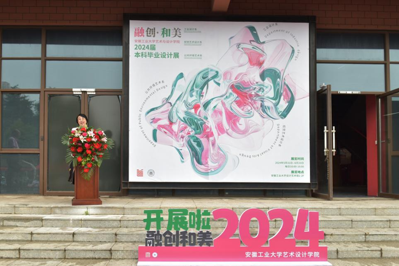 5月31日上午,艺术与设计学院2024届本科生毕业设计作品展在秀山校区设计艺术馆广场盛装开展。校党委常委、副校长顾明言,马鞍山市委宣传部副部长、市文明办主任陈学明,休宁县人民政府副县长李文喜,“当涂民歌”国家级非遗传承人陶小妹,北京小米科技有限公司小米生态链设计部工业设计负责人、我校工业设计专业2004届校友谢迎春,南京大美天第文旅投资集团有限公司副总裁孔德银等26家企业代表出席仪式。党委宣传部、研究生工作部、团委、教务处、国际交流与合作处、信息化处、创新创业学院等部门负责人以及艺术与设计学院师生代表参加仪式。