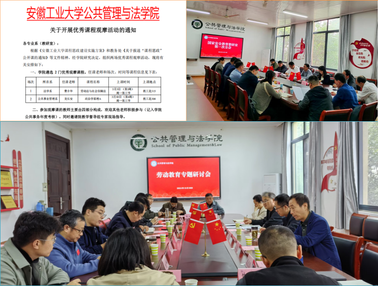 学院高度重视教学研究和改革工作,积极推动本科教材、案例库、专业负责人、教学研究和质量工程项目建设,努力营造浓厚的教学学术氛围。近年来,学院教师编写出版《企业行政管理》《劳动教育理论与实践》等本科教材,建立专业教学案例库,加强课程教学大纲和教案建设,做到每门课都有教案;行政管理专业负责人徐济益教授获省级教学名师称号(2021)、省青年拔尖人才称号(2023),劳动与社会保障专业负责人张洪根教授获省级模范教师称号(2016)等;学院成功获批国家级首批新文科研究与改革实践项目教学研究等课题46项,获批省级“六卓越一拔尖”人才培养创新项目等质量工程项目24项。学院加强公共基础课教学建设,提升《劳动教育与实践》《国家安全教育》《经济法C》等跨院课程教学质量。
